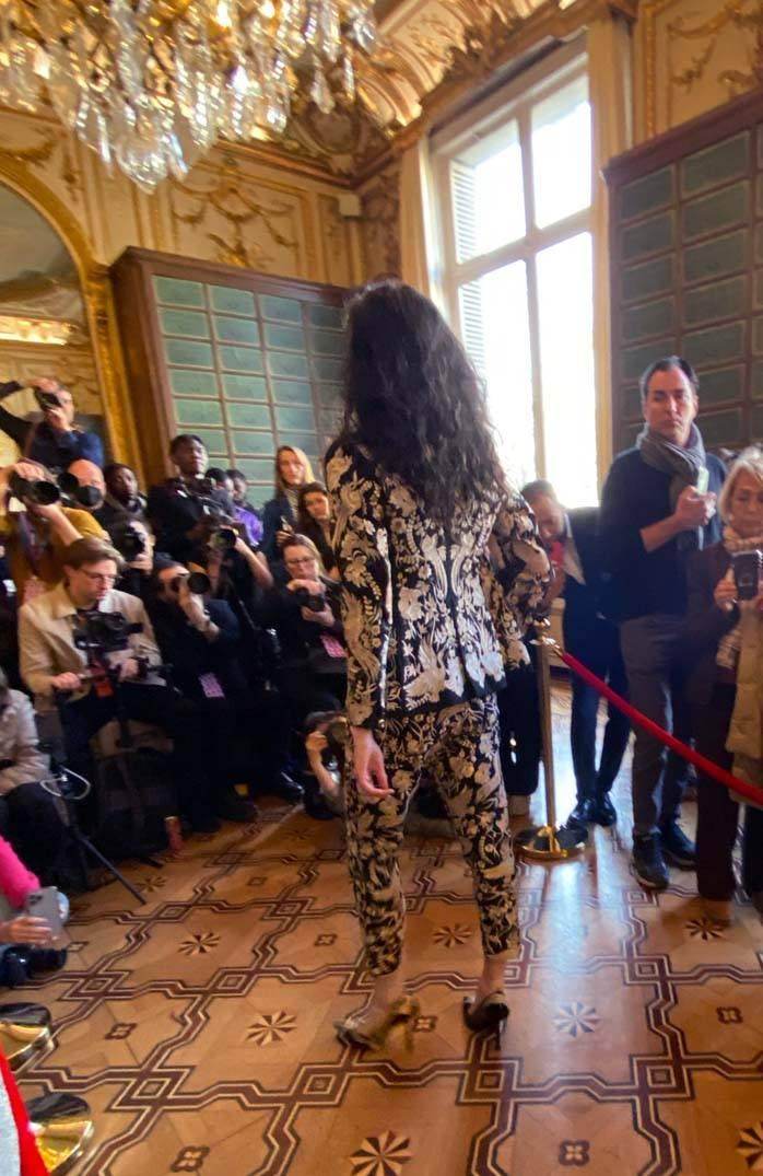 Our signature allover Gara stitch embroidery jacket and tapered fit pants paired with Gara stitch embroidered bralette. The jacket and bralette are fully lined. Metallic gold button closure on the sleeves and front in the jacket.