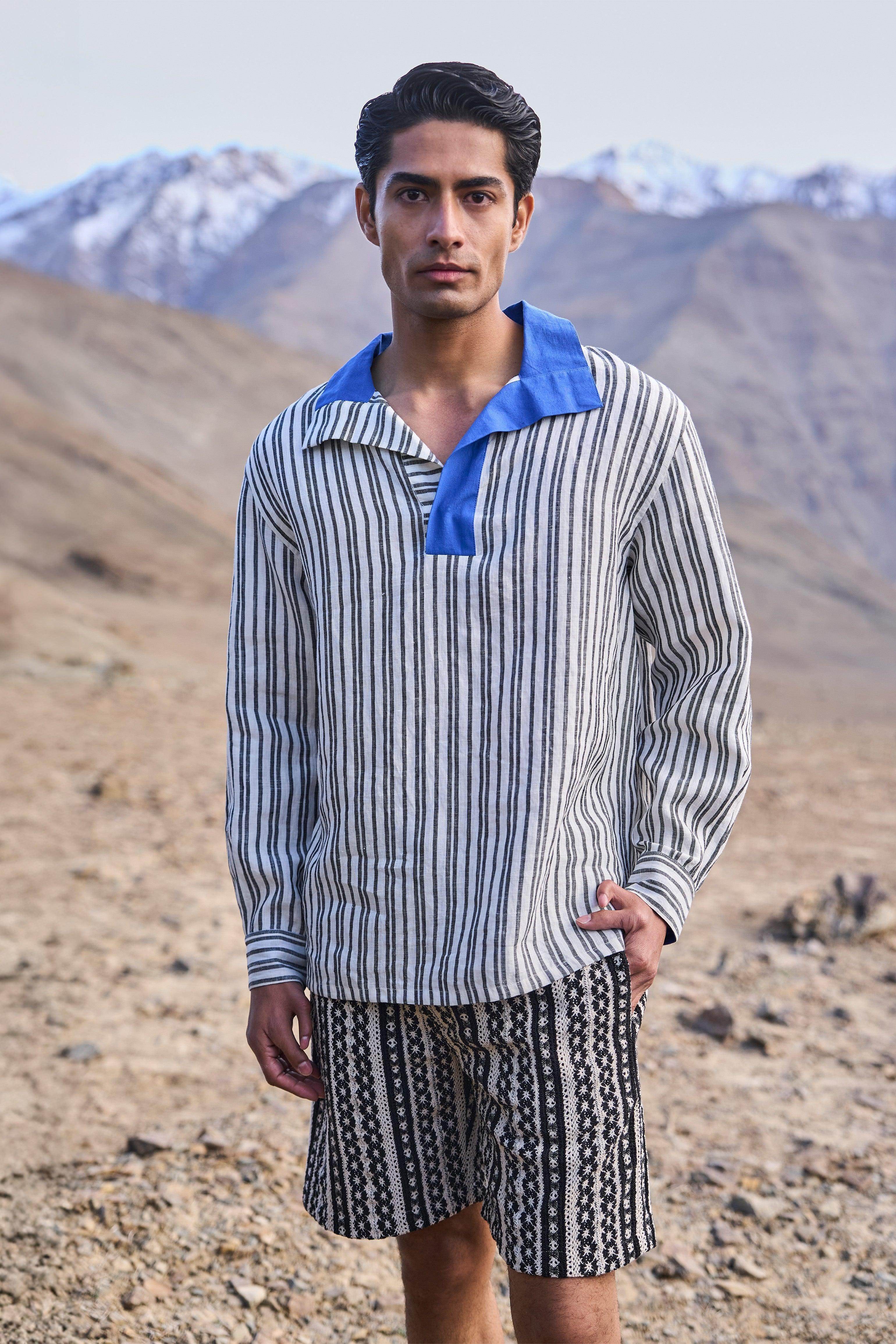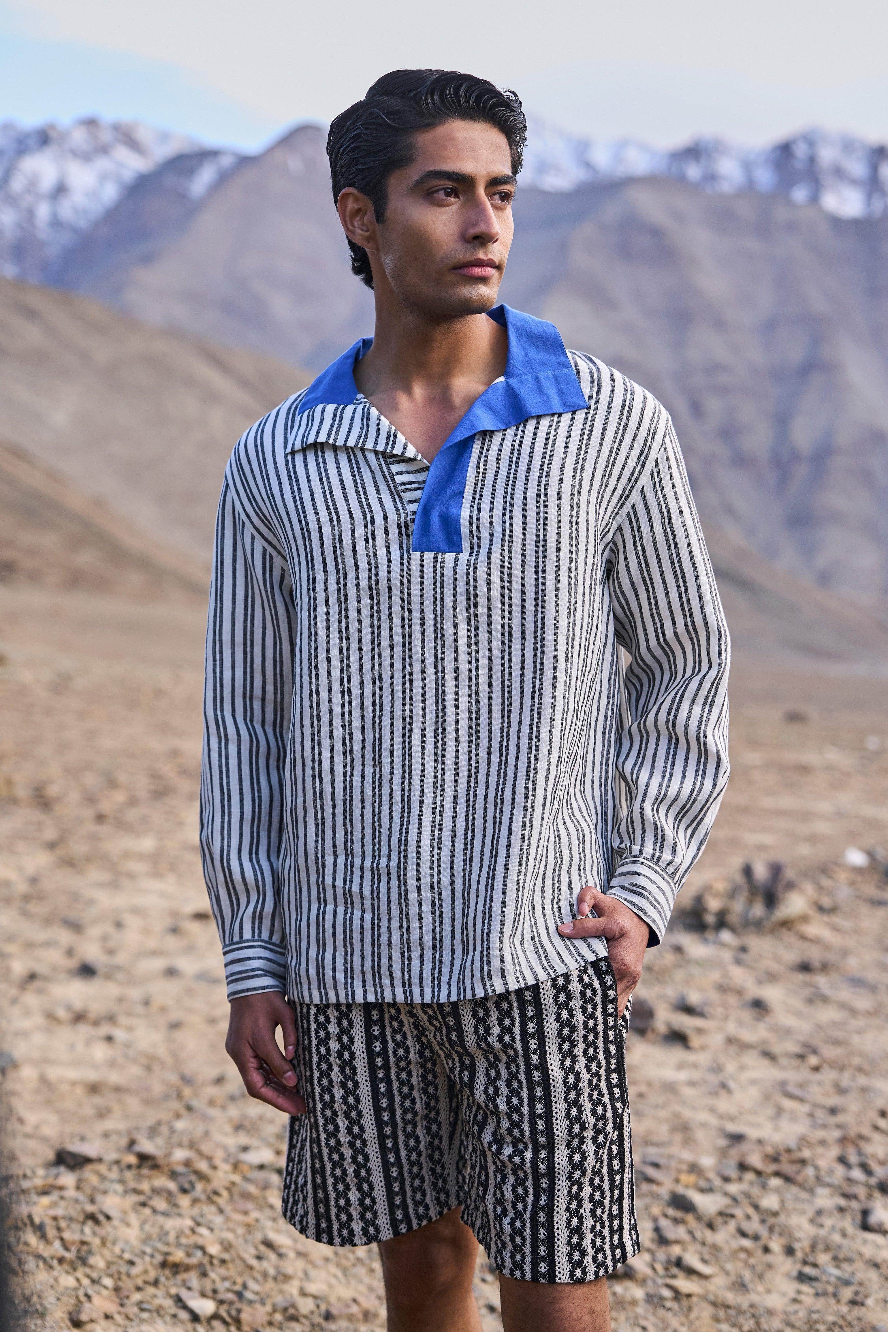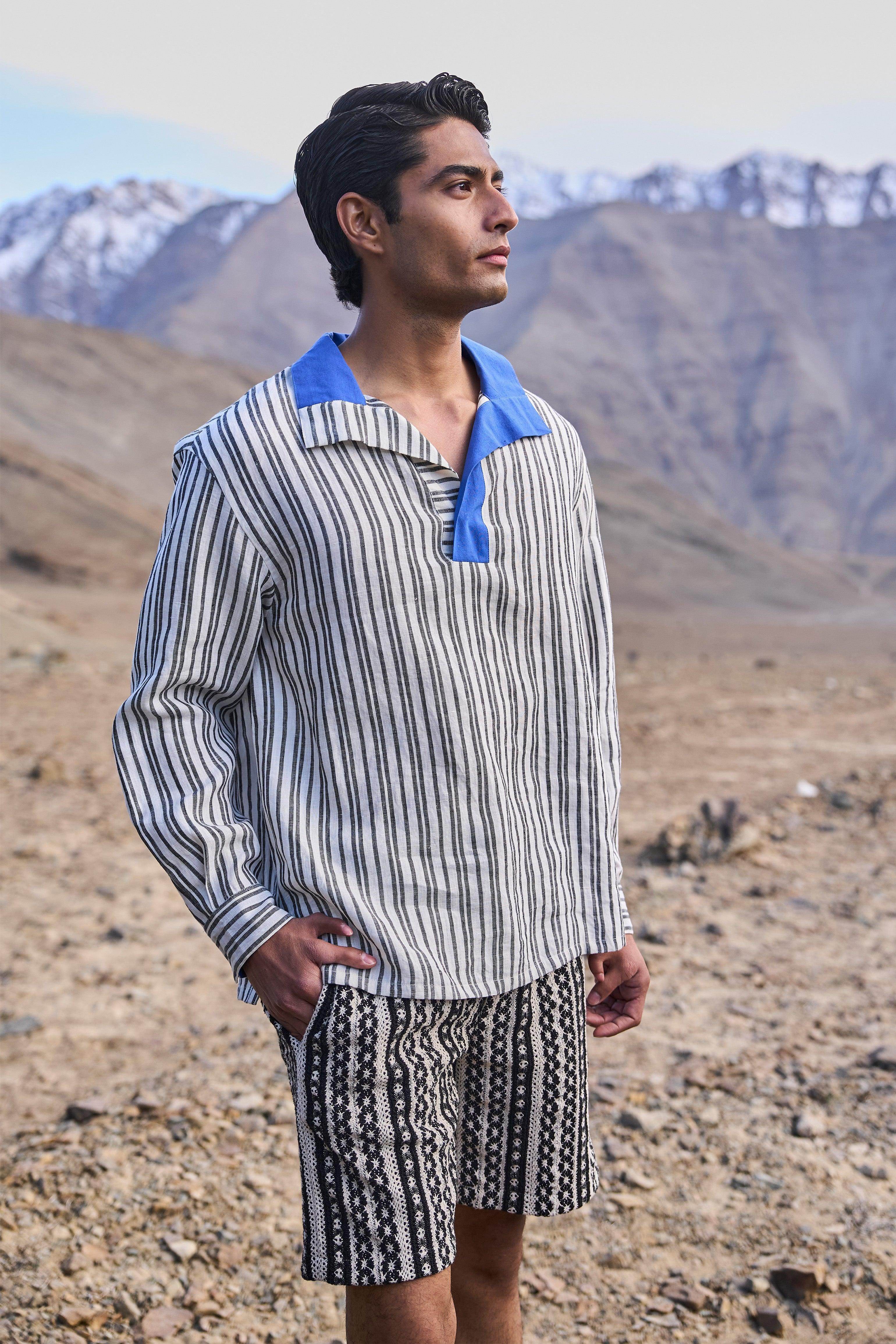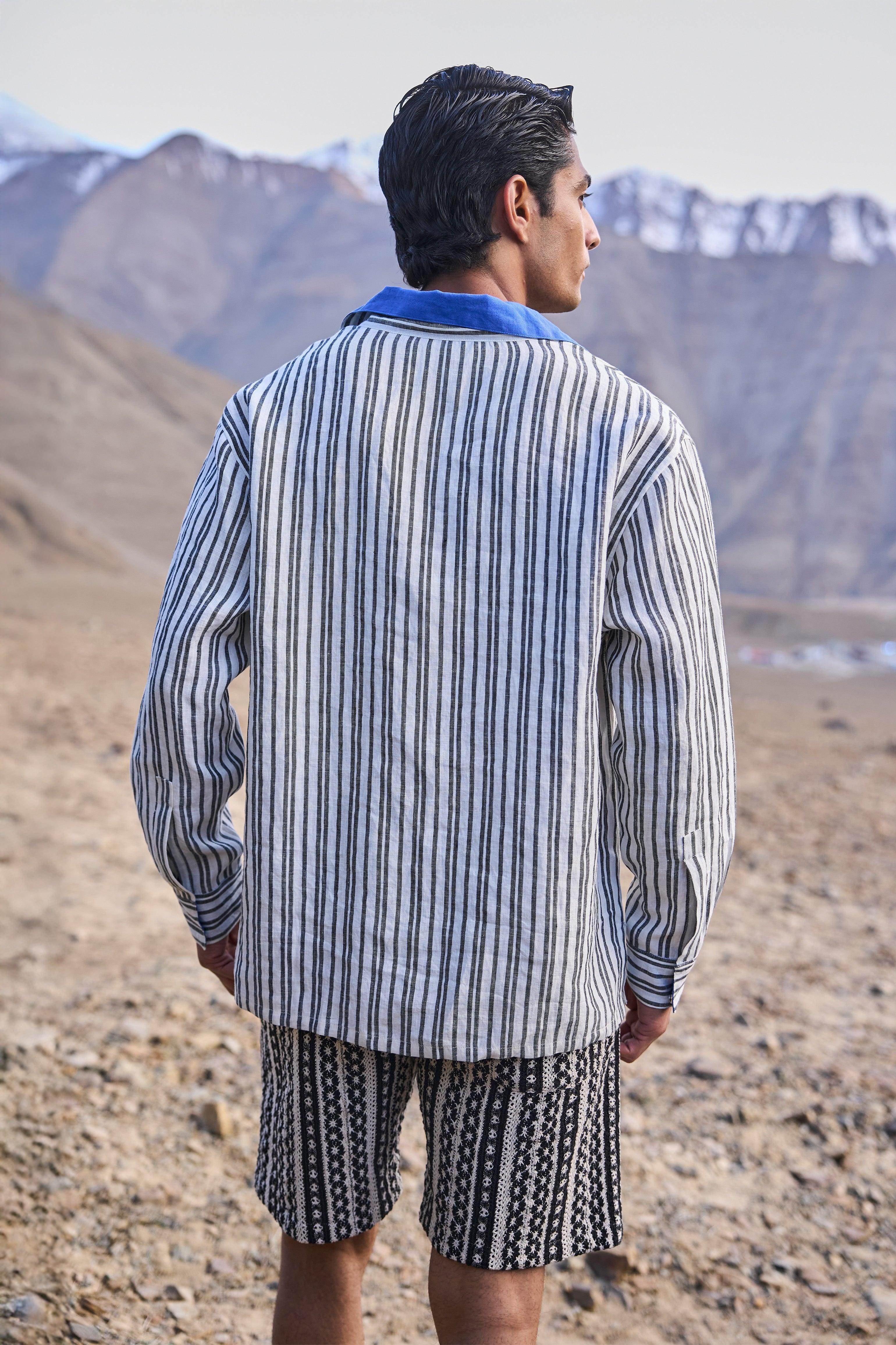 Knitted lace shorts in black and white jacquard stripe pattern. Fully elasticated waistband with a zip and dual hook closure. Pockets in the sides and back. Garment is fully lined.