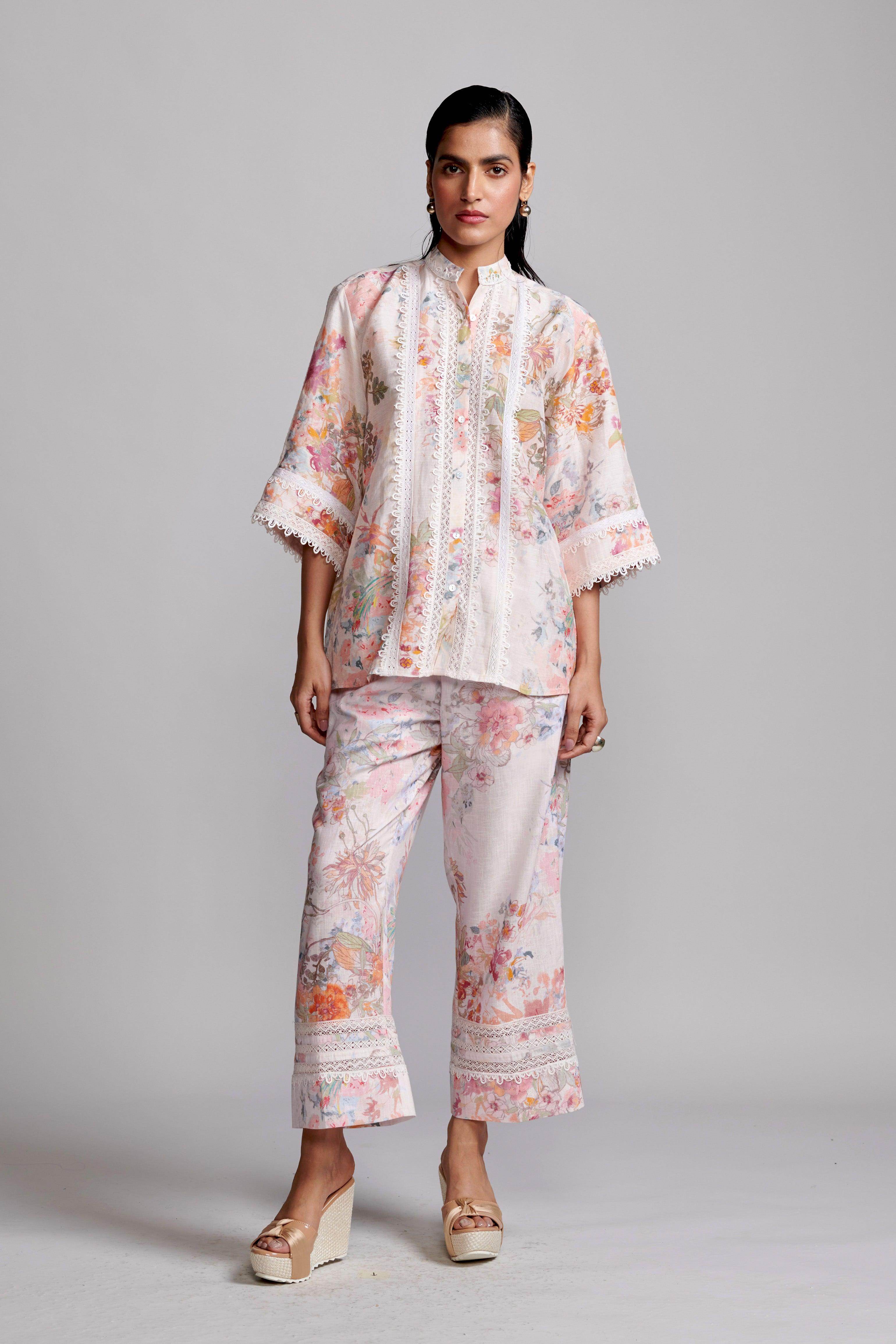 LACE LINEN PRINTED PANT
