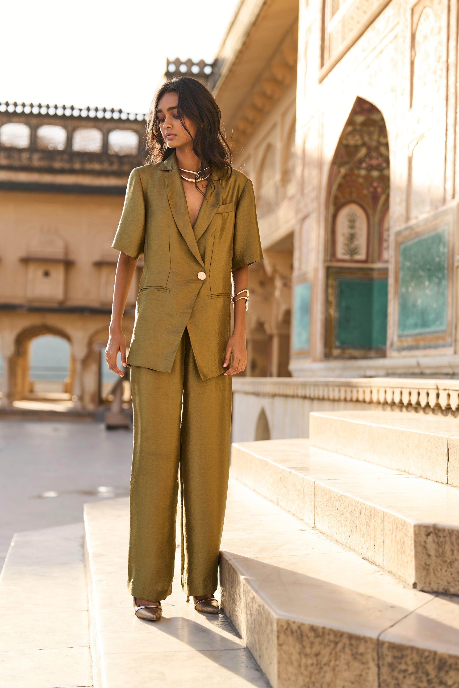 OLIVE BROCADE PANT SUIT - dash and dot dash and dot