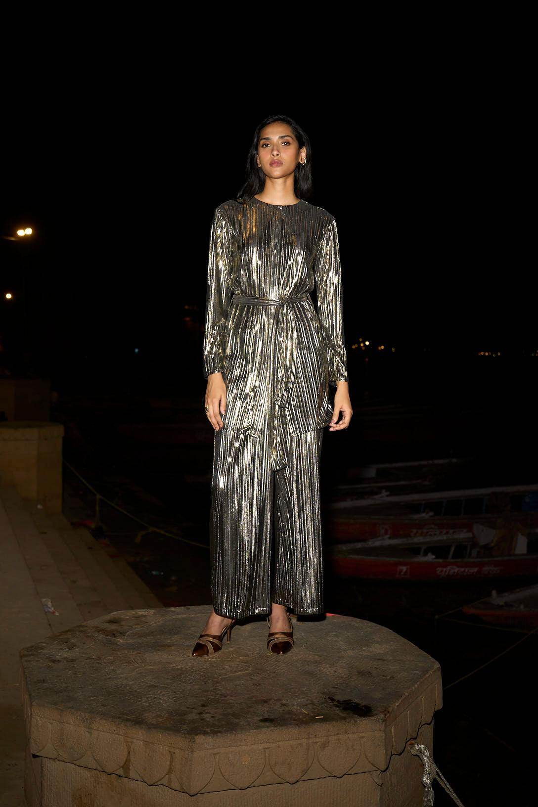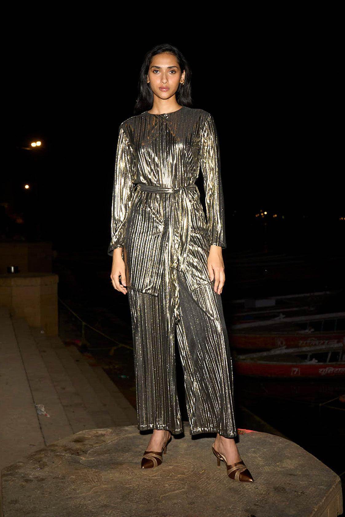 PLEATED LAMÉ PANT SET - dash and dot dash and dot