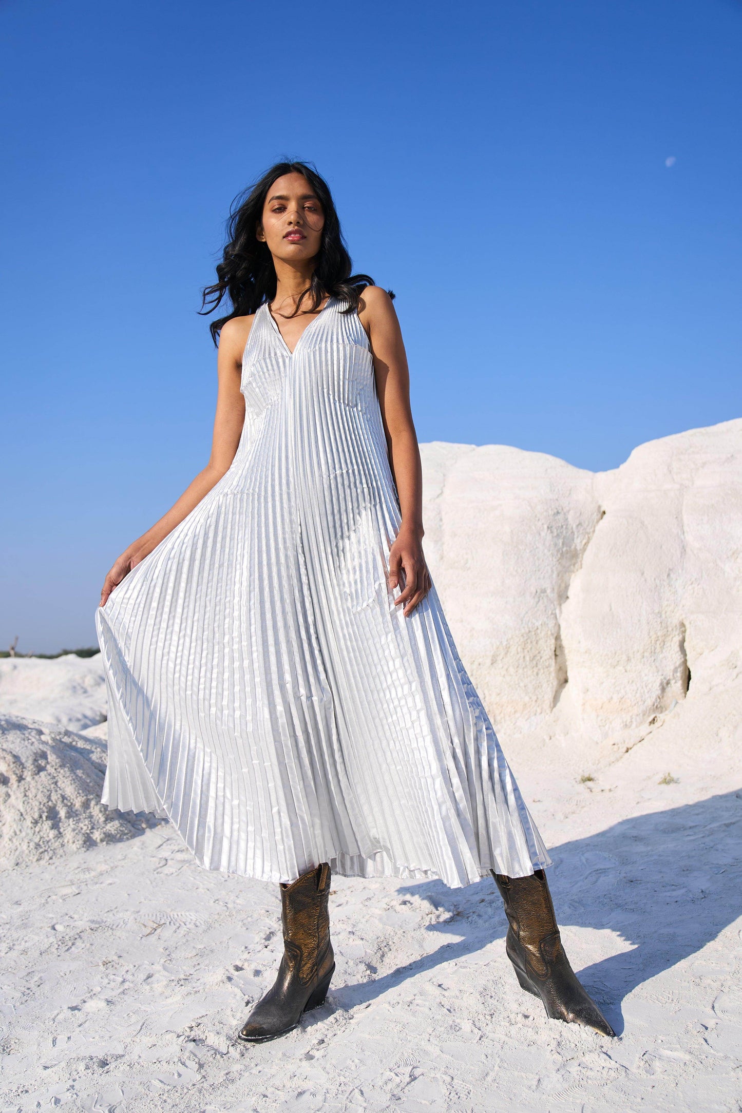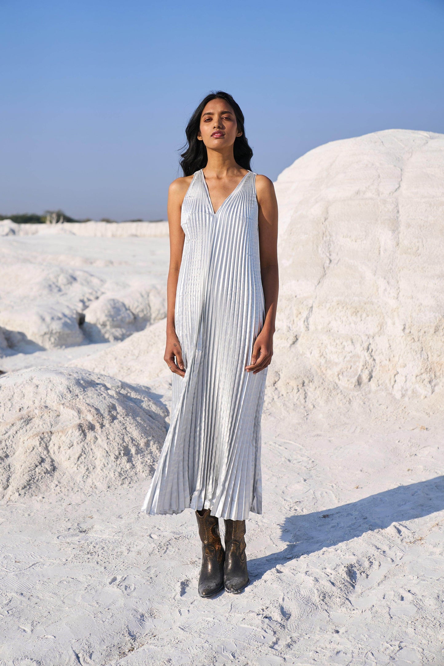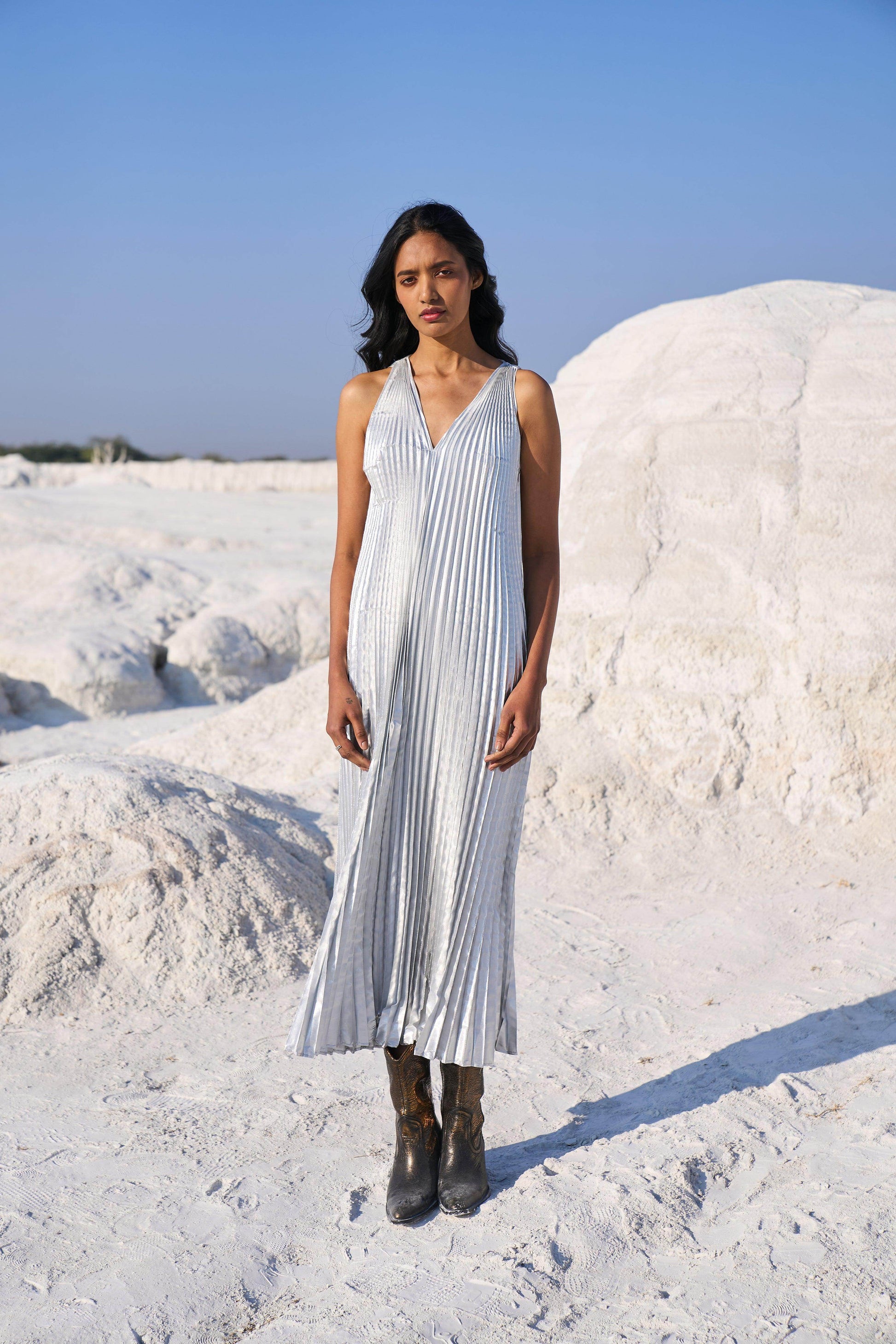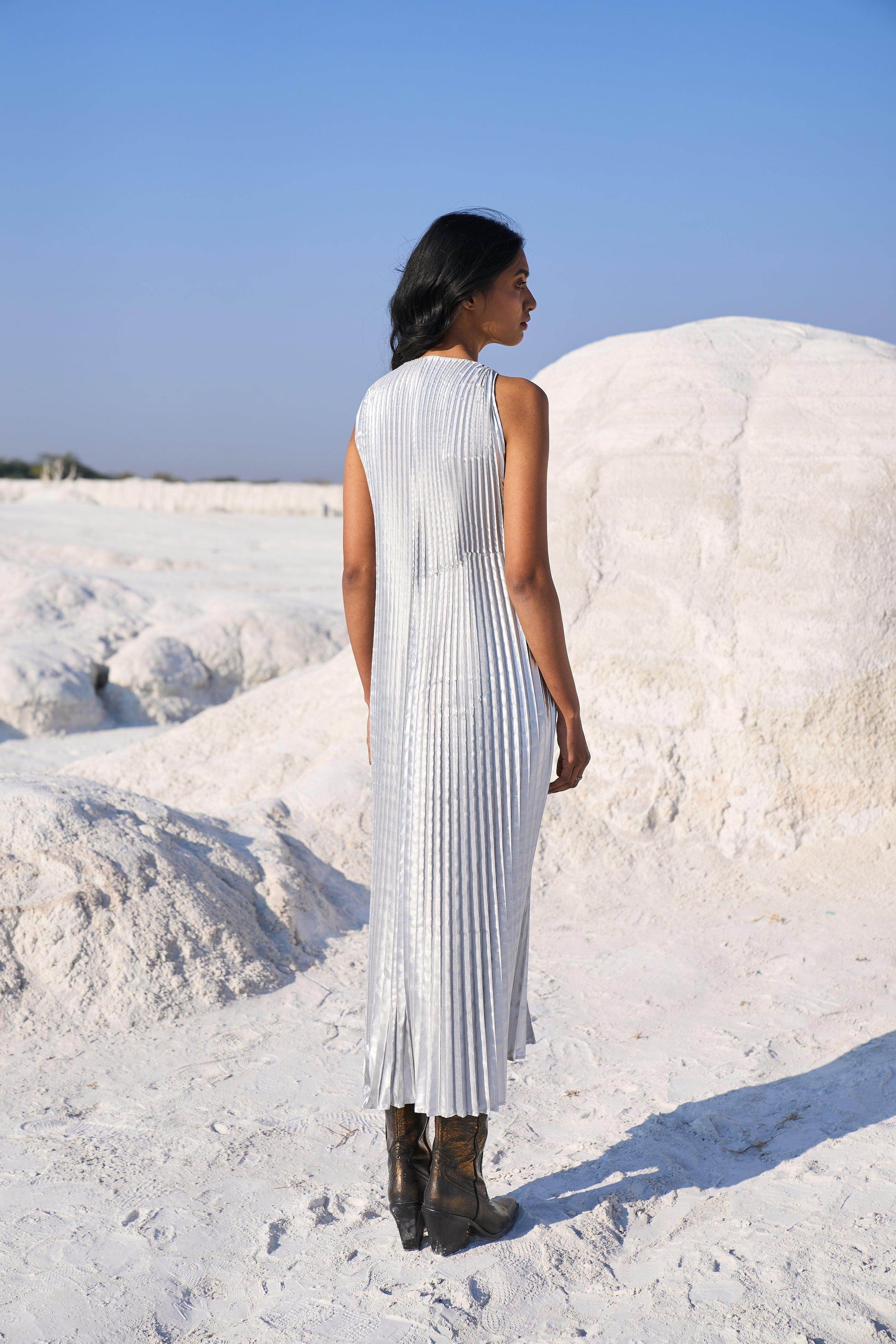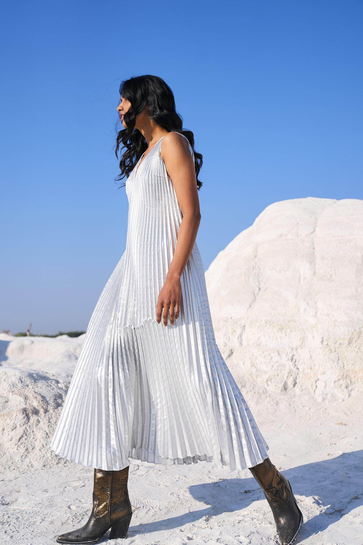 SILVER PLEATED MAXI - dash and dot dash and dot