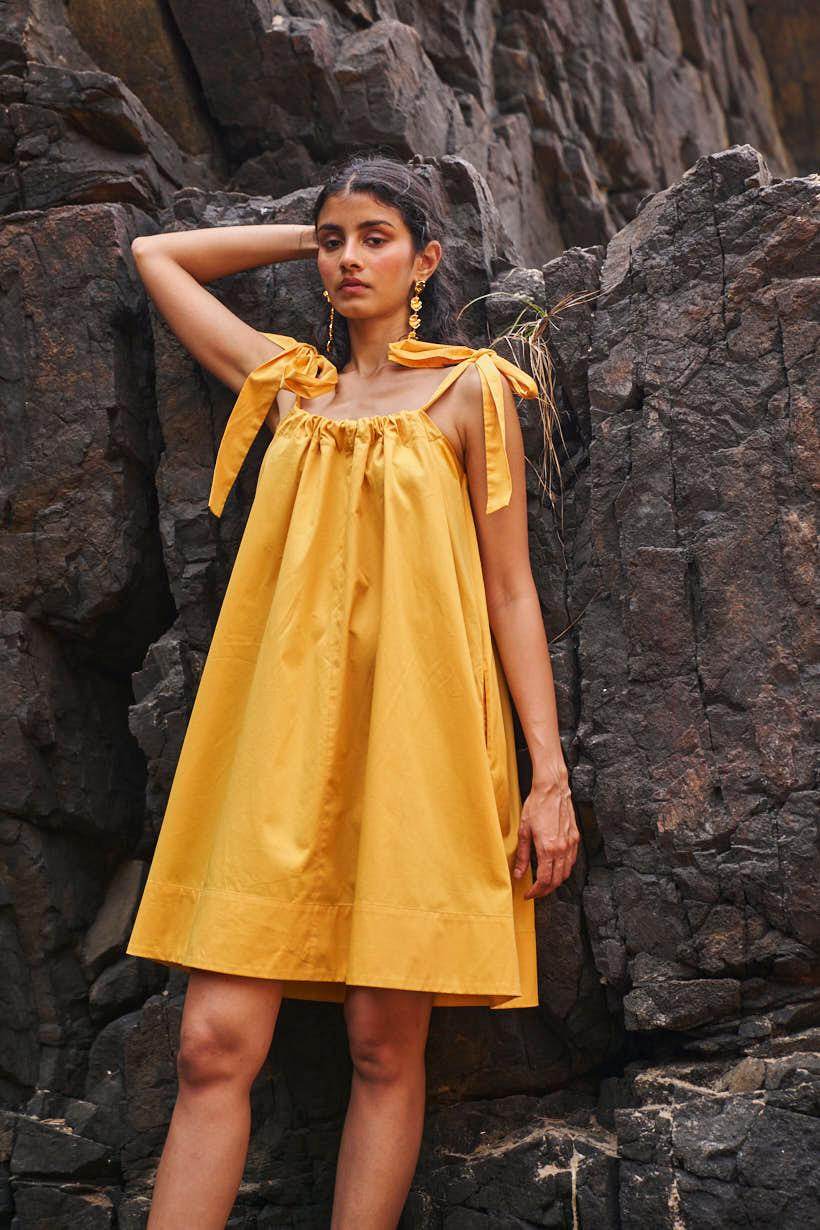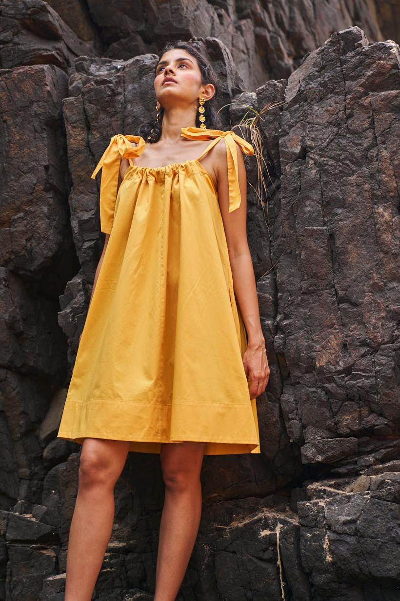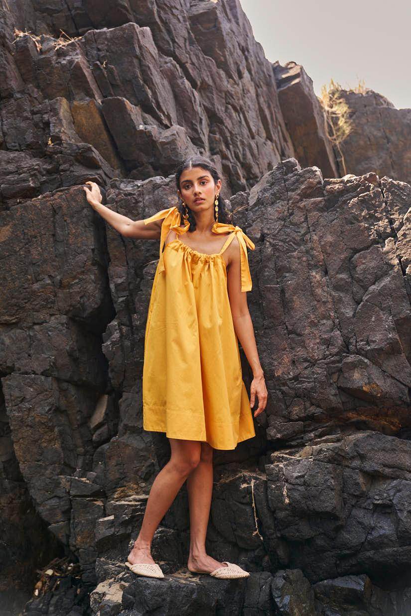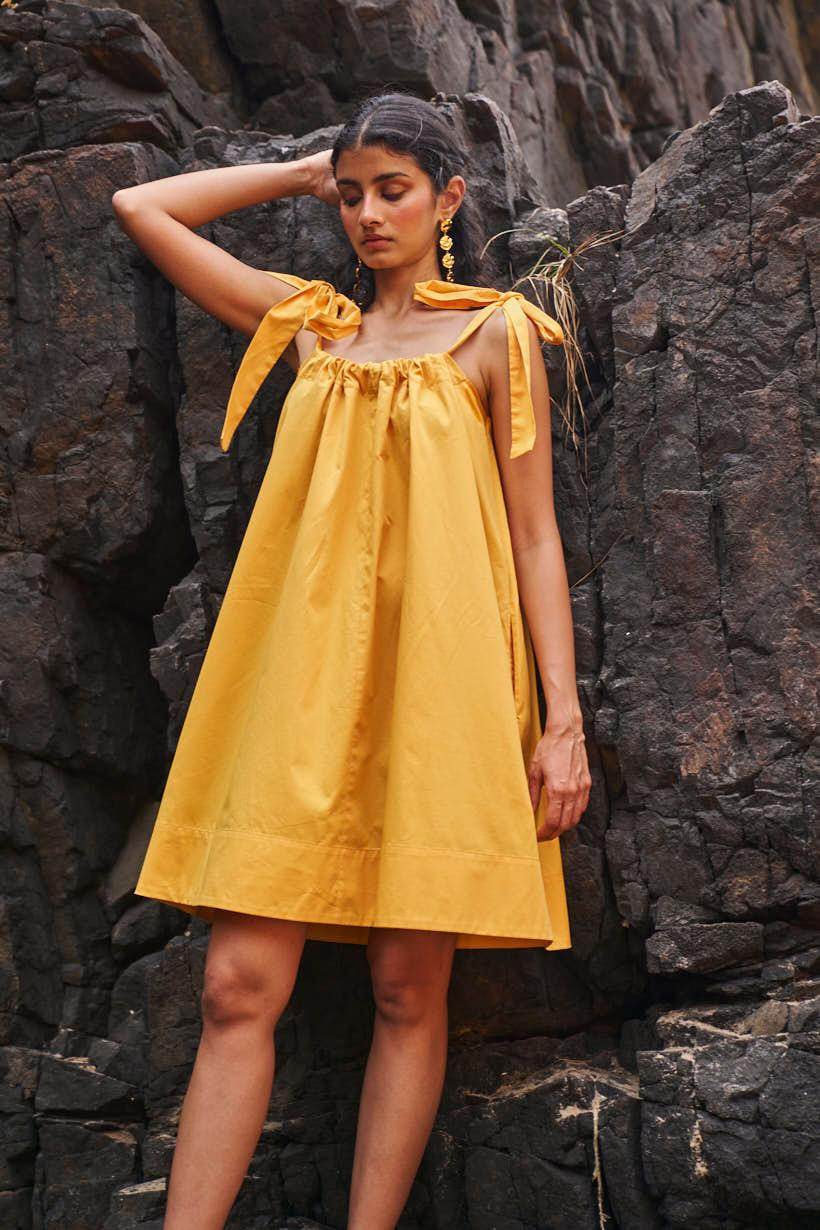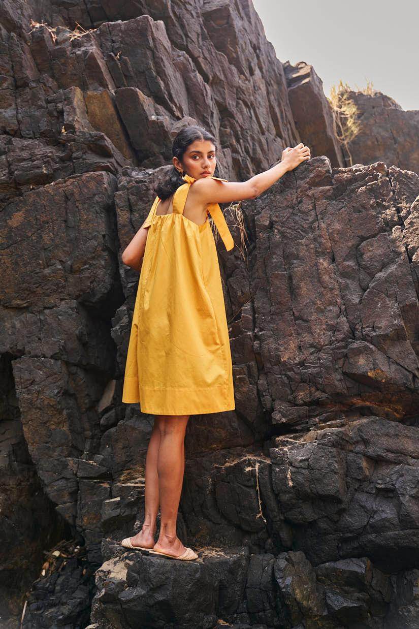 Sleeveless pleated round neck dress in our signature abstract print. Raw-edge hem and vents in the sides. Relaxed fit. The print is cut at random and each piece is unique!