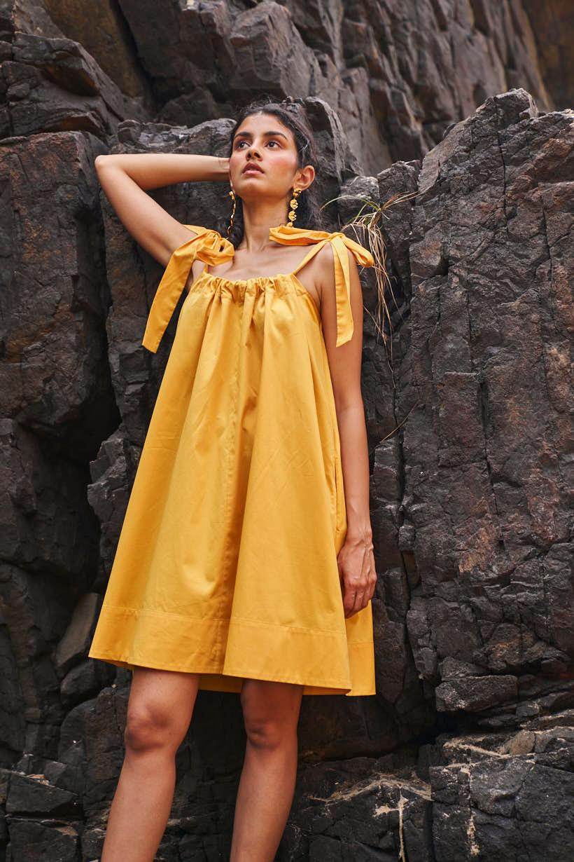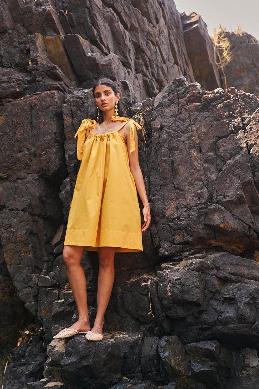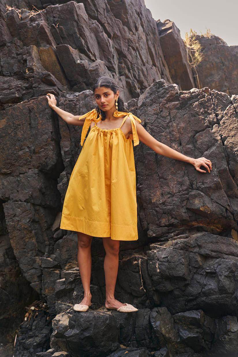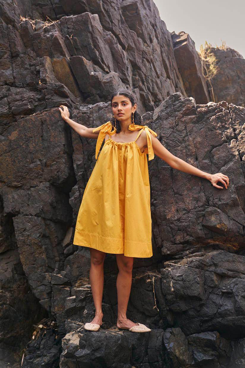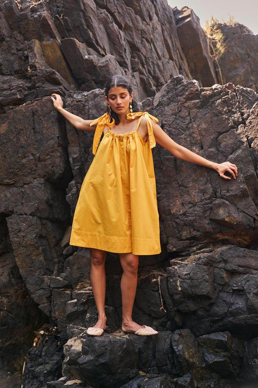 Sleeveless pleated round neck dress in our signature abstract print. Raw-edge hem and vents in the sides. Relaxed fit. The print is cut at random and each piece is unique!