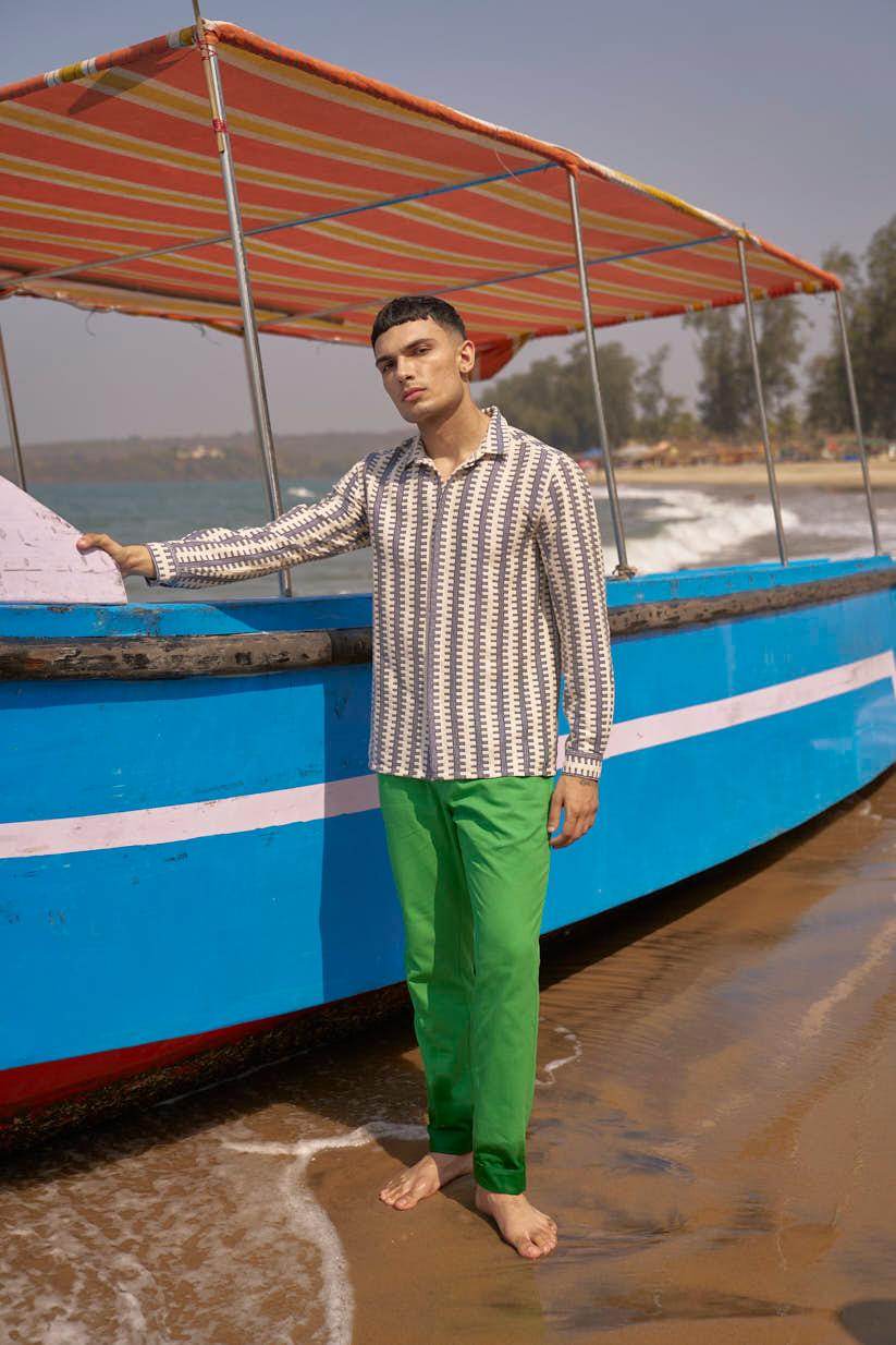 Relaxed fit cotton twill pant. Semi elasticated at the waist with a button and zip closure in the front. Pockets in the sides and back. Turn up cuff detail at the hem.